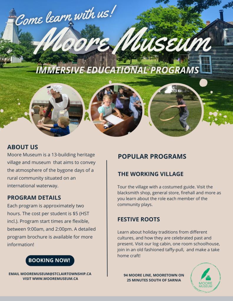 226-784-3340 or Email: mooremuseum@stclairtownship.ca